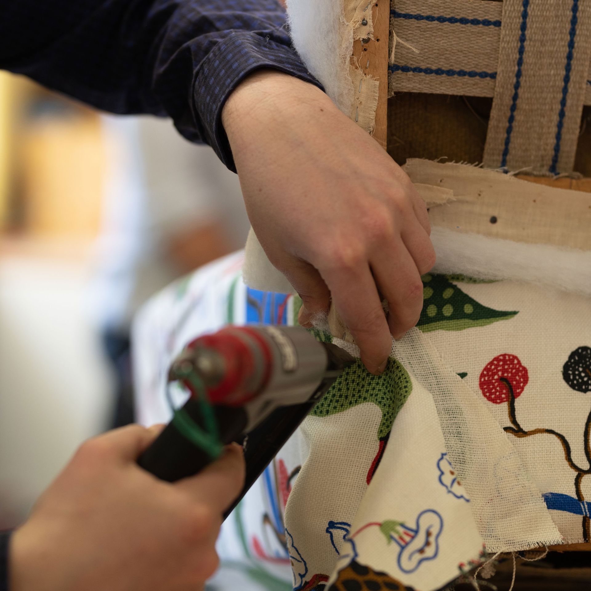 Bevor es losgeht, muss die Polsterung erneuert oder zumindest aufgefrischt werden. Moderne Polsterungen werden aus FCKW-freien Schaumstoffen mit Federkern oder Latex bzw. aus Kaltschaum hergestellt. Dabei bestimmen Drahtstärke, Anzahl und Höhe der Federn den Sitzkomfort und die Haltbarkeit der Unterfederung. Oft werden dafür Gummigurte, Federholzleisten oder Flachfedern verwendet. Als Alternativen kommen auch klassische Materialien wie Palmfaser, Kokosfaser oder Rosshaar infrage.